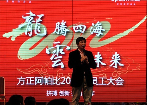 2012年2月9日下午,主題為“龍騰四海·云啟未來”的方正阿帕比2012員工大會(huì)在中關(guān)村中鋼大廈江南賦宴會(huì)廳召開,來自全國各地的300多名阿帕比員工與集團(tuán)領(lǐng)導(dǎo)嘉賓齊聚一堂,共同回顧了過去一年的工作和成績,也共同展望了今后三年方正阿帕比的發(fā)展目標(biāo)和方向。今年的方正阿帕比員工大會(huì)多處創(chuàng)新,不僅把以往由公司一至兩位領(lǐng)導(dǎo)做全年總結(jié)的形式改為由公司總辦會(huì)全體成員進(jìn)行匯報(bào),而且匯報(bào)形式也由長篇PPT改為輕松活潑的對(duì)話聊天和文藝表演,通過簡(jiǎn)單生動(dòng)的方式讓員工了解了公司的計(jì)劃和變化,也讓員工與公司的關(guān)系更加和諧。在工作會(huì)環(huán)節(jié)之后,本屆方正阿帕比員工大會(huì)還有一場(chǎng)精彩的文藝晚會(huì),晚會(huì)中不僅有眾多普通員工帶來的各種才藝表演,還有一個(gè)由方正阿帕比總辦會(huì)全體成員表演的舞蹈情景劇,場(chǎng)面非?;鸨?。整個(gè)晚會(huì)呈現(xiàn)出一片歡樂和諧的景象,讓所有阿帕比人的心都緊緊聚在了一起。